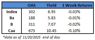 - Single B yields also declined to close at 7.07%, while risk premium remained unchanged. Single Bs also posted small gains for a second session